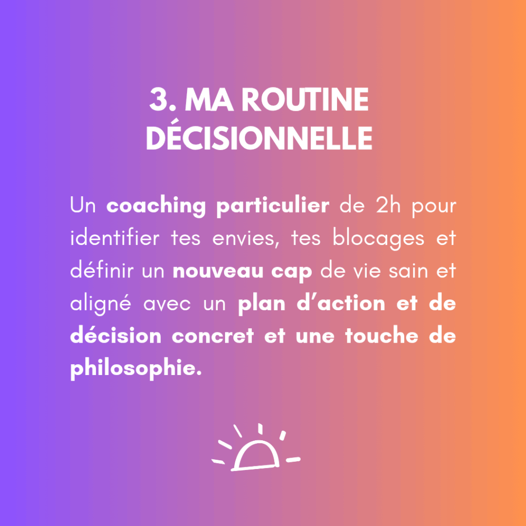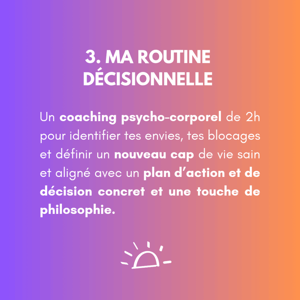 - Routine corporelle ou émotionnelle ou décisionnelle : 1h – 80€ // 2h – 110€