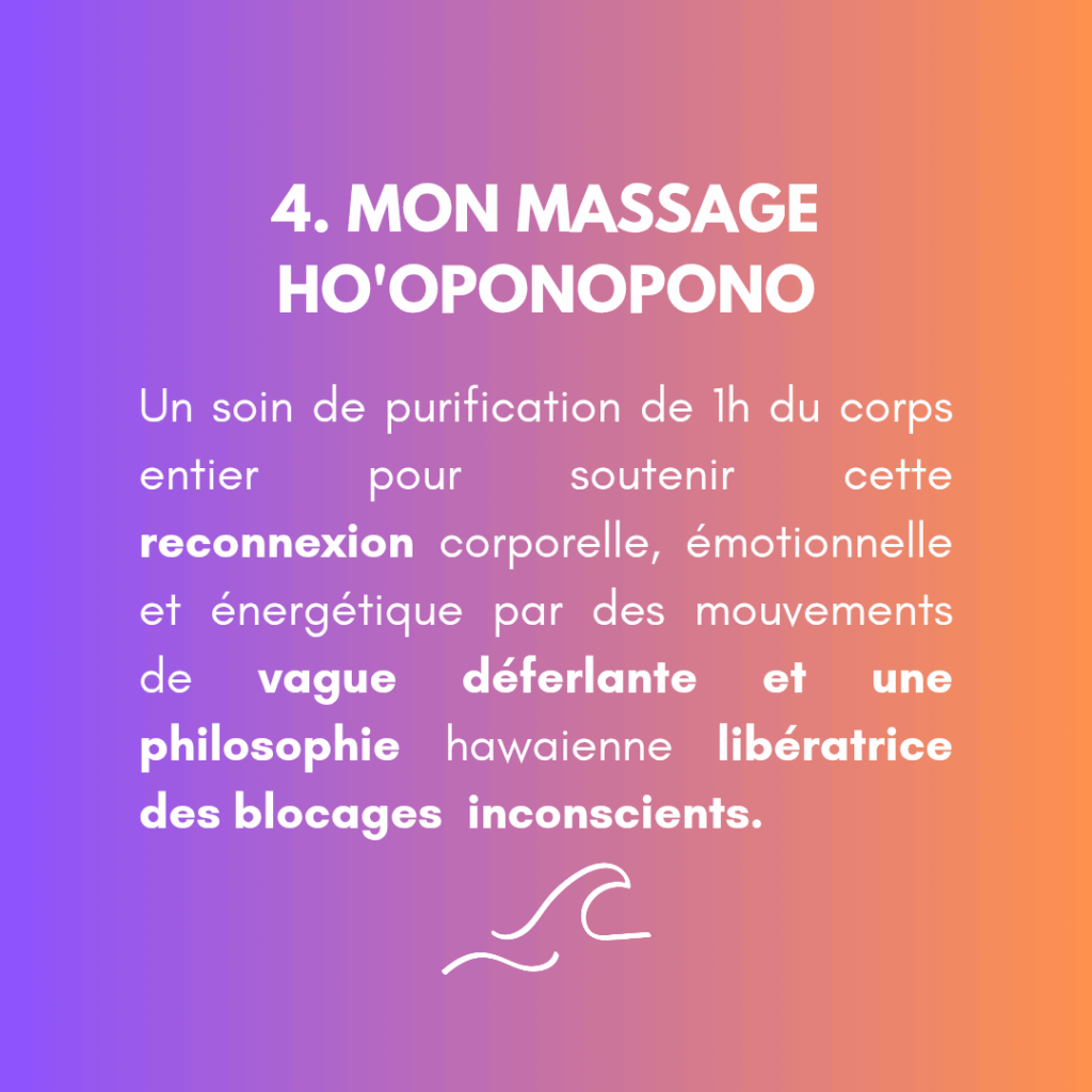 - Massage : 1h – 80€ // 1h30 -110€